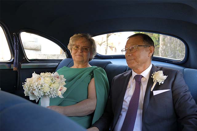 A celebração foi religiosa, na igreja paroquial de São Tiago de Caldelas onde a D. Gracinda e o Sr. Domingo fizeram a sua renovação de votos.