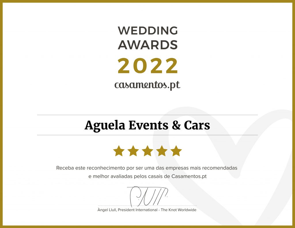 Os Wedding Awards premiaram as empresas melhor avaliadas pelos casais que se casaram em 2021, considerando um total de mais de 11.000 empresas nas diferentes categorias, além de considerar, como não poderia deixar de ser, a qualidade e o profissionalismo do serviço que oferecem. Aguela Events & Cars acumulou um total de 19 opiniões neste site de referência, o que lhe valeu o prémio. Portanto, o papel mais importante é desempenhado pelos casais que, com as suas opiniões e depois de terem desfrutado dos serviços
